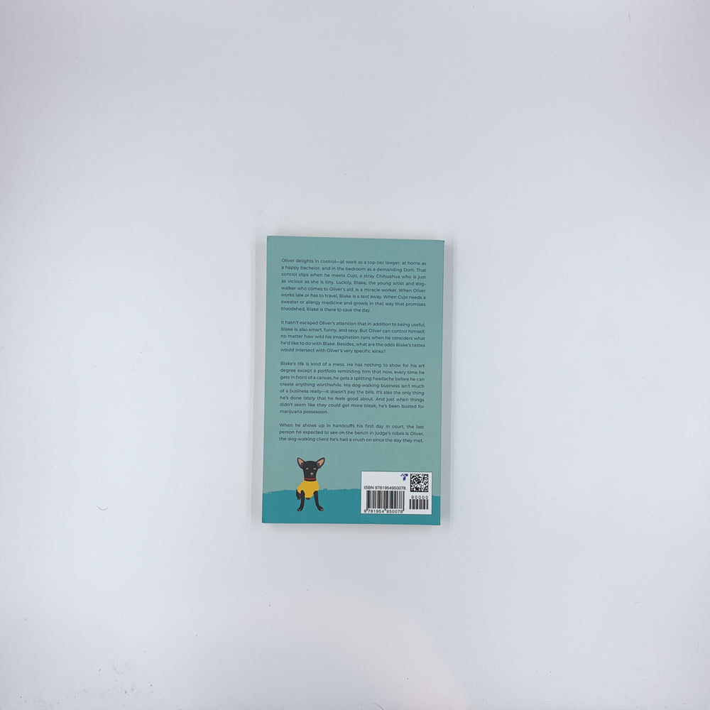 Oliver delights in control—at work as a top-tier lawyer, at home as a happy bachelor, and in the bedroom as a demanding Dom. That control slips when he meets Cujo, a stray Chihuahua who is just as vicious as she is tiny. Luckily, Blake, the young artist and dog-walker who comes to Oliver’s aid, is a miracle worker. When Oliver works late or has to travel, Blake is a text away. When Cujo needs a sweater or allergy medicine and growls in that way that promises bloodshed, Blake is there to save the day. It hasn’t escaped Oliver’s attention that in addition to being useful, Blake is also smart, funny, and sexy. But Oliver can control himself, no matter how wild his imagination runs when he considers what he’d like to do with Blake. Besides, what are the odds that Blake’s tastes would intersect with Oliver’s very specific kinks? Blake’s life is kind of a mess. He has nothing to show for his art degree except a portfolio reminding him that now, every time he gets in front of a canvas, he’s struck with a splitting headache before he can create anything worthwhile. His dog-walking business isn’t much of a business, really—it doesn’t pay the bills—but it’s the only thing he’s done lately that he feels good about. Things don’t seem like they could get any more bleak, and then he’s busted for marijuana possession. And when he’s escorted to the courtroom in cuffs, the last person he expects to see on the bench in judge’s robes is Oliver... the dog-walking client he’s had a crush on since the day they met.