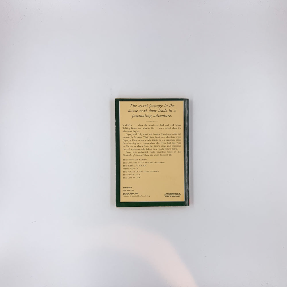 Digory and Polly meet and become friends one cold, wet summer in London. Their lives burst into adventure when Digory's Uncle Andrew, who thinks he is a magician, sends them hurtling to . . . somewhere else. They find their way to Narnia, newborn from the Lion's song, and encounter the evil sorceress Jadis before they finally return home.