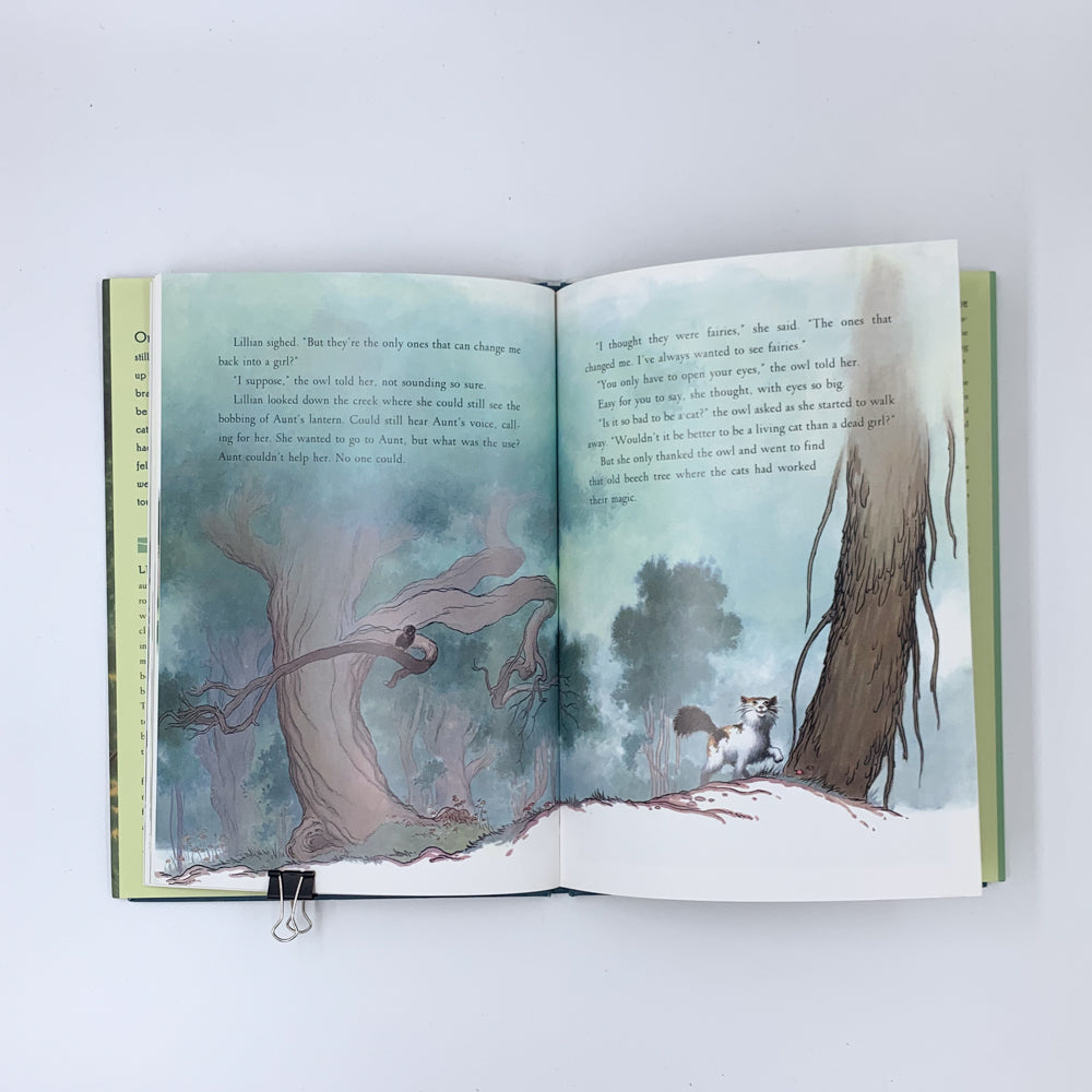 Lillian is an orphan who lives with her aunt on a homestead miles from anyone, surrounded by uncharted forest. She wanders the woods, chasing squirrels and rabbits and climbing trees. Free-spirited and independent Lillian is a kindred spirit to the many wild cats who gather around the ancient beech tree. One day, while she is under the beech, Lillian is bitten by a poisonous snake. The cats refuse to let her die, and use their magic to turn her into one of their own. How she becomes a girl again is a lyrical, original folktale.