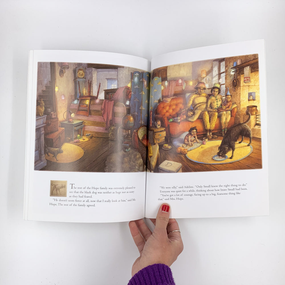 When a huge black dog appears outside the Hope family home, each member of the household sees it and hides. Only Small, the youngest Hope, has the courage to face the black dog, who might not be as frightening as everyone else thinks.