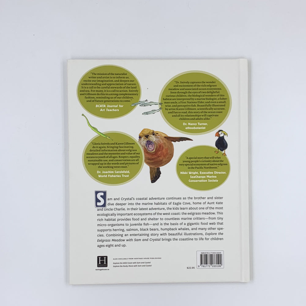 With beautiful, scientifically accurate illustrations, this fascinating story teaches children about the many fish, crustaceans, marine mammals, and micro-organisms that live in and feed off the eelgrass meadows of the north Pacific coastal region. “Recommended for school and public libraries regardless of their proximity to the west coast. Although works of fiction, the books contain a wealth of accessible facts.”― Resource Links “A major theme that emerges is the need to respect and care for the ocean environment and to understand the harmony among its inhabitants. These appealing, fact-rich books go a long way to enhancing that understanding for young readers. Highly recommended.”― Canadian Review of Materials Sam and Crystal’s coastal adventure continues as brother and sister dive deeper―literally―into the marine habitats of Eagle Cove, home of Aunt Kate and Uncle Charlie. In their third adventure, the kids learn about one of the most ecologically important ecosystems on the west the eelgrass meadow. This rich habitat provides food and shelter to countless marine critters―from tiny micro-organisms to juvenile fish, and is the basis of a gigantic food web that supports herring, salmon, black bears, humpback whales and many other species. Ada, an Indigenous woman from nearby Salmon Bay Village, tells the children about her people’s knowledge of land and sea, complementing Aunt Kate’s Western scientific teachings and reinforcing the importance of respecting nature. Combining an entertaining story with gorgeous imagery and the author’s scientific background and extensive work with Indigenous Elders and educators, Explore the Eelgrass Meadow with Sam and Crystal brings the coastline to life for children ages eight and up.