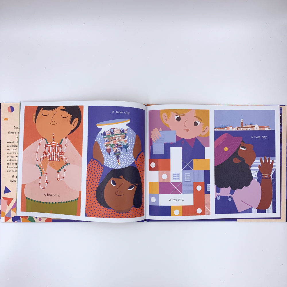 Vivid illustrations introduce readers to cities and their citizens across the globe.
