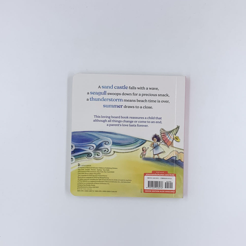 A sandcastle falls with a wave, a seagull swoops down for a precious cracker, a looming thunderstorm means beach time is over, and summer draws to a close. Although most everything changes or comes to an end, a parent’s love never does. It endures and reassures no matter what.