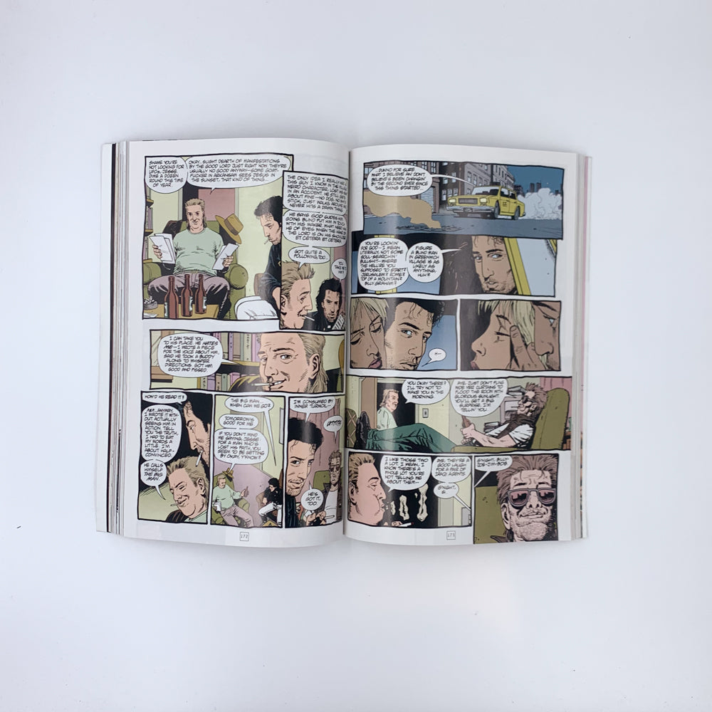 The creative powerhouse team of Garth Ennis and Steve Dillon bring readers on a violent and riotous journey across the country in this award-winning Vertigo series, beginning with Preacher Book One. Collects issues #1-12.
