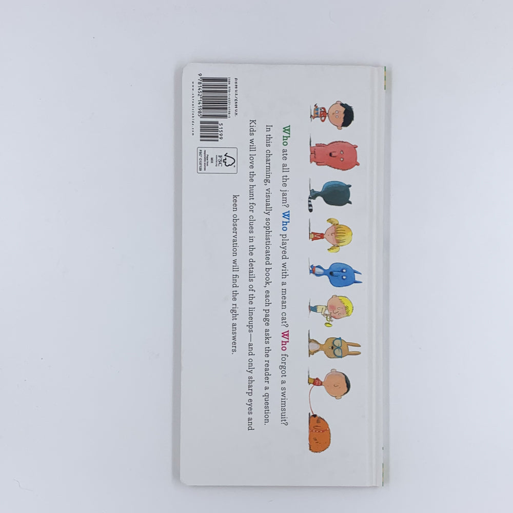 In this charming book, each page asks the reader a question about the lineup of characters featured on the spread. Sharp eyes and keen observation are necessary. There's only one right answer, and it's not always easy! Kids will love learning early concepts like expressions and positions as a natural consequence of their hunt for clues in the details of the lineup. It's a book for all audiences: the seek-and-find call to action on every page makes Who Done It? a wonderful lap or parent read, while the whimsical art, distinctive horizontal format, and hip exposed board ensures this book will be equally appealing as engaging coffee table décor.